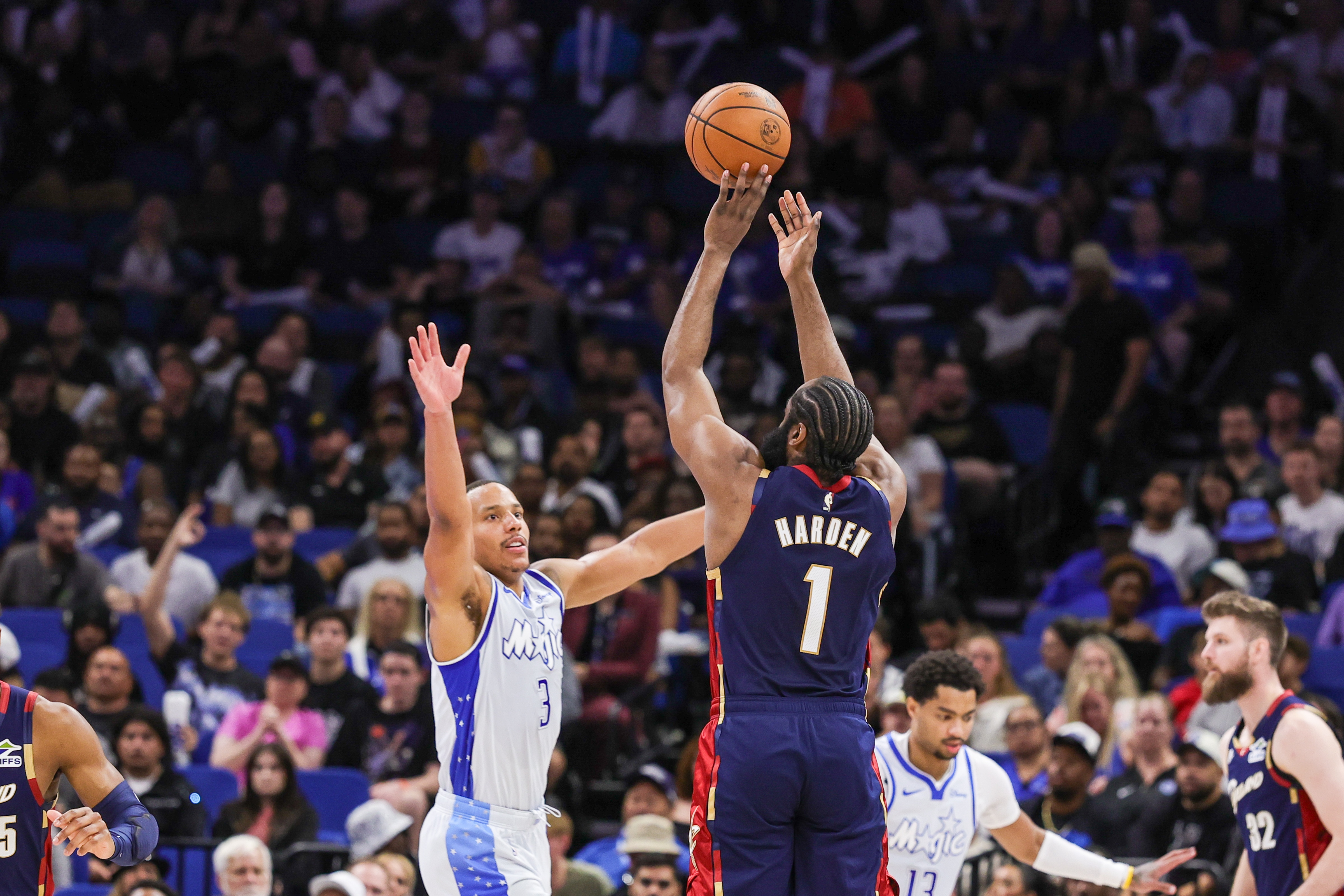 骑士136-131力克魔术,哈登和米切尔再一次打出了双枪完美分工的标志性比赛。