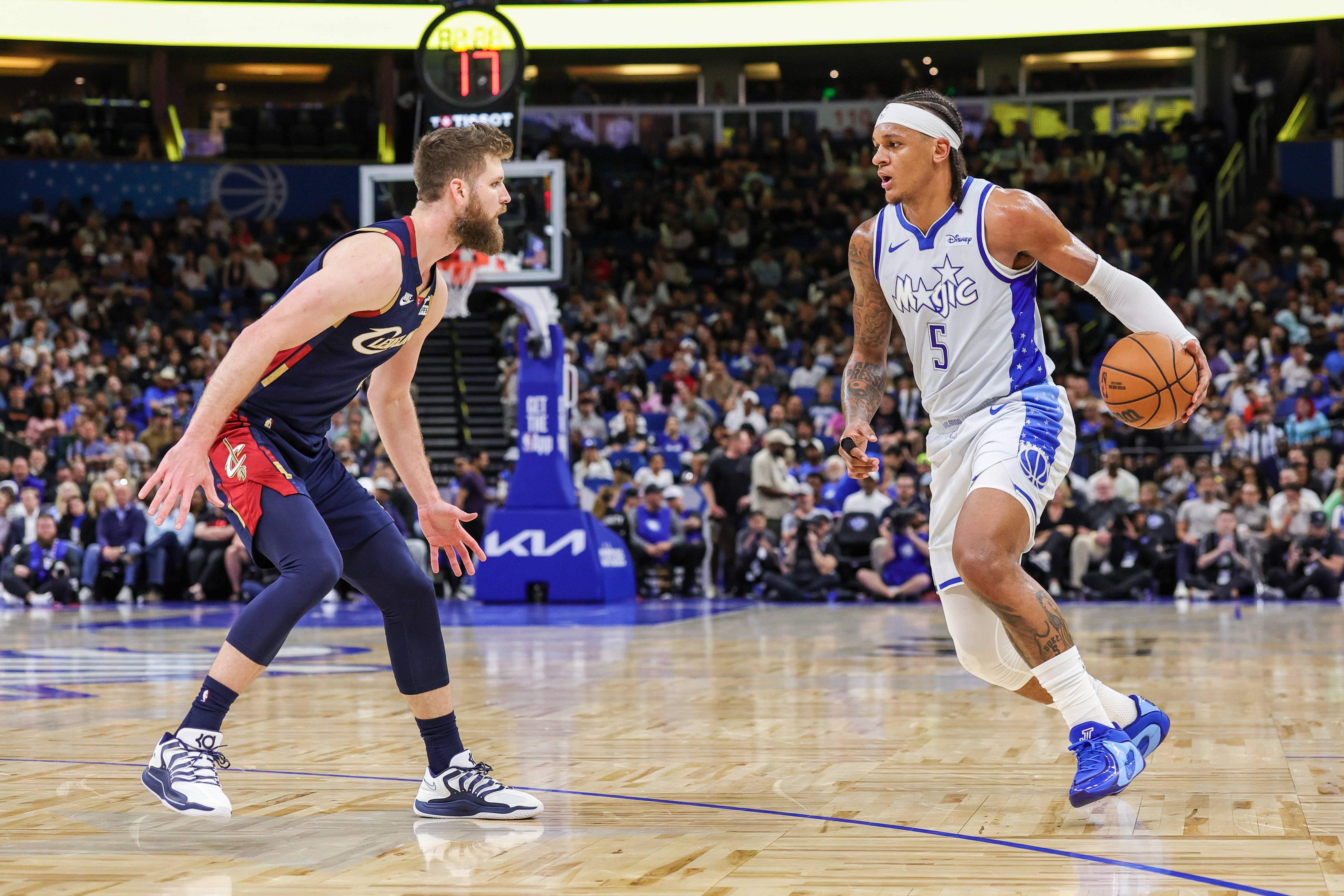 魔术王牌班凯罗并不擅长三分投射,反观骑士双核都擅长持球挡拆投射,并且骑士多个点都有三分能力,梅里尔和斯特鲁斯更是专职型投手,无加时轰136分更代表了骑士现象级的进攻体系火力。